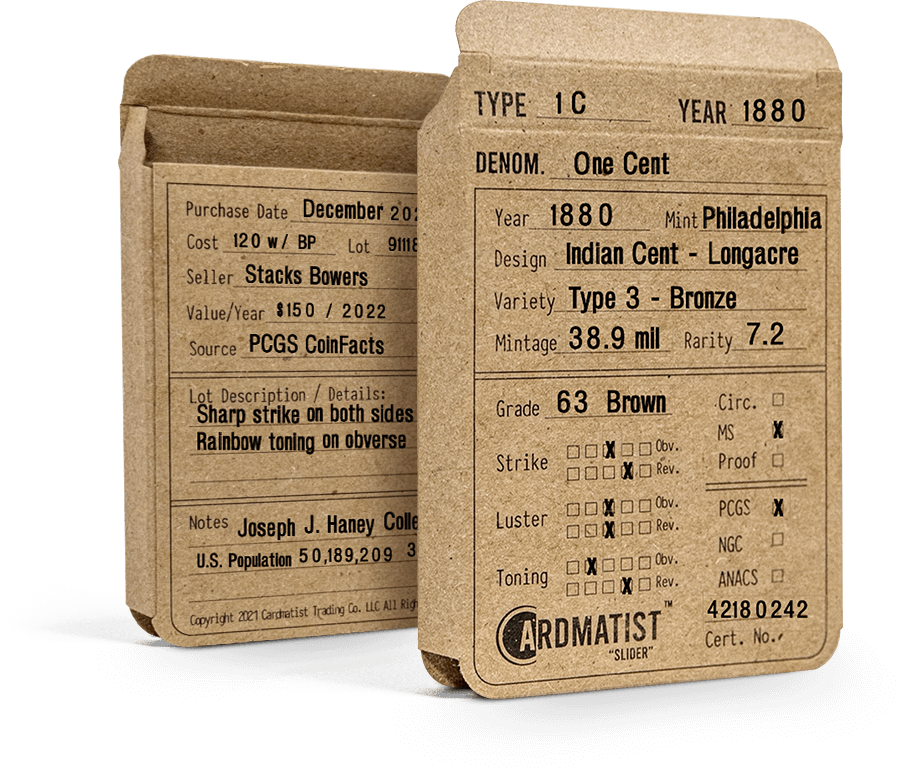 The Slider allows you to be more organized in your collecting, you don’t need to slide every slab out of the box just to look for that coin. The Type and Year information area at the top of the slider allows you to organize your collection by type of coin or the year.